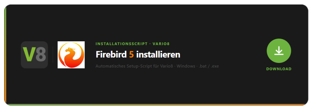 Hier zeige ich Dir Schritt für Schritt, wie Du Firebird 5 installierst und in Vario8 einrichtest.
